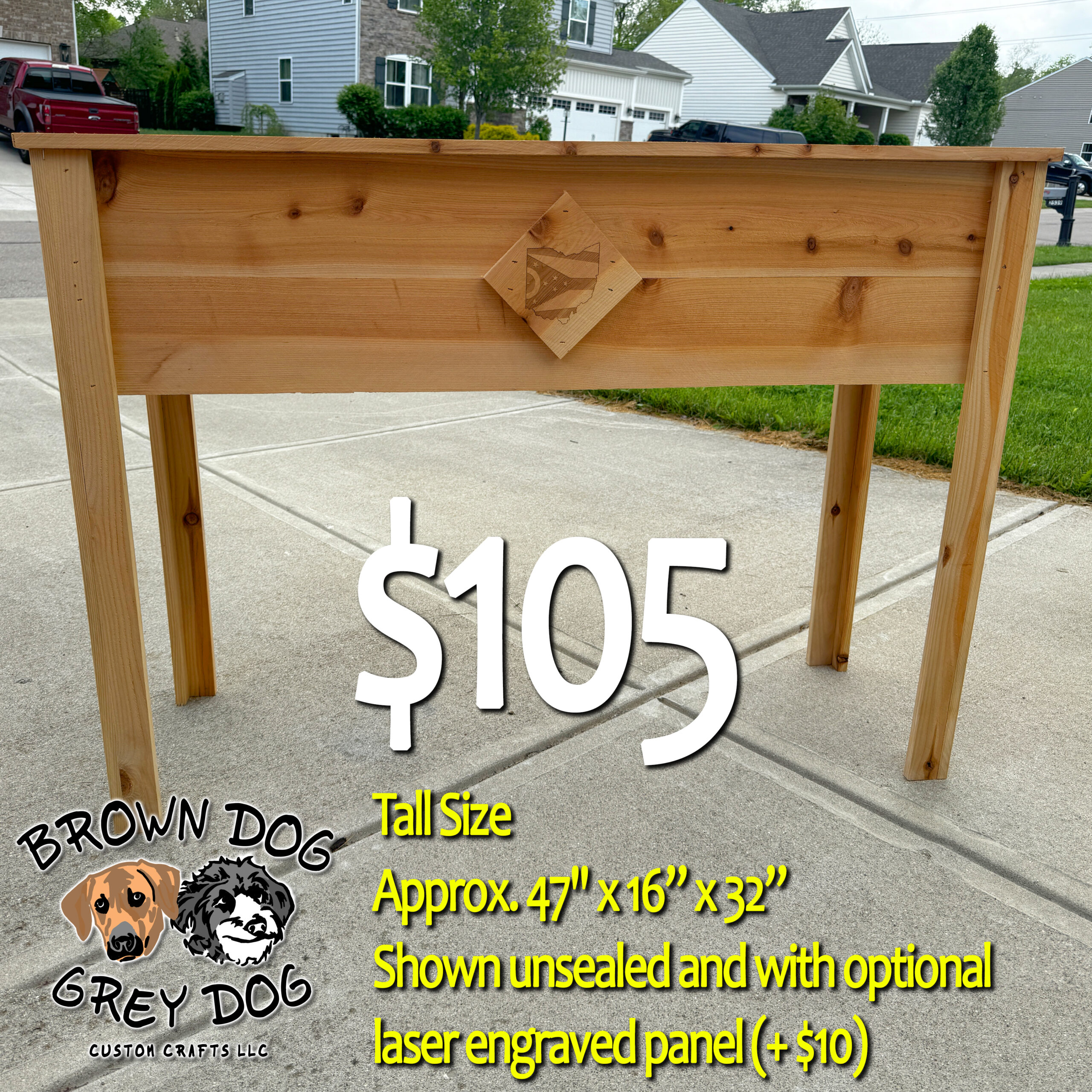 Custom laser engraved side panels +$20 (please email your original images to photos@browndoggreydog.com)